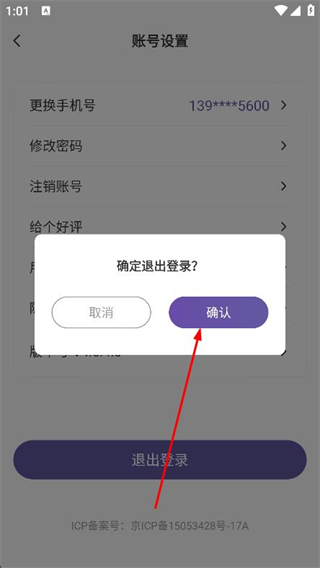 4、在彈出的提示框中,點擊確認即可退出賬號。