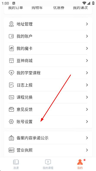 2、在我的頁面,找到并點擊下方賬號設(shè)置選項。