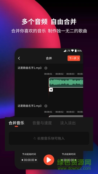 高效的混音合成:隨意剪輯兩首曲子,混合一起播放,可以感受不一樣的音樂效果。