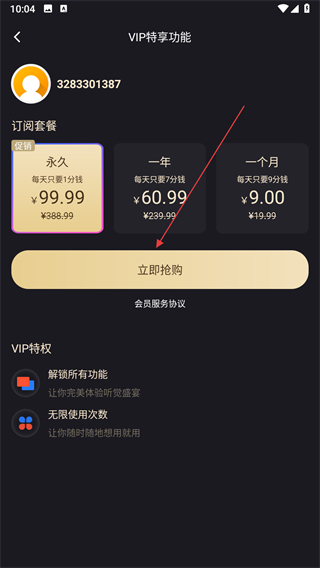 2、在個人功能頁面中,找到VIP特惠選項并點擊,進入會員購買界面。