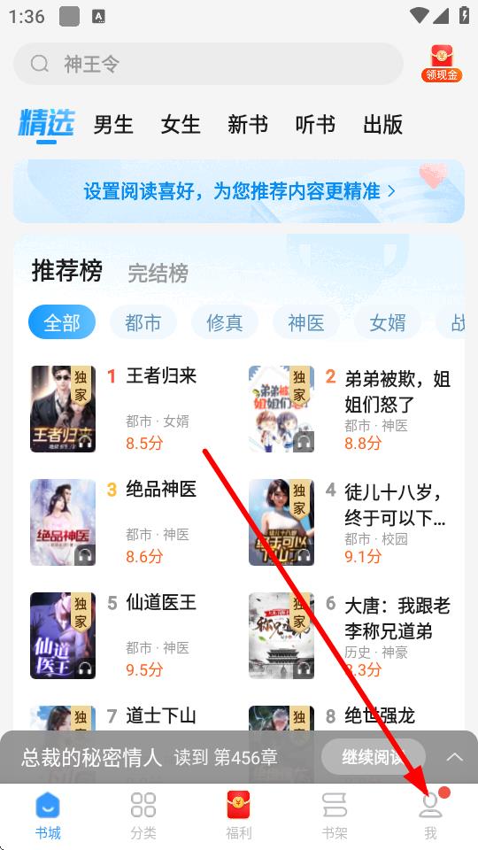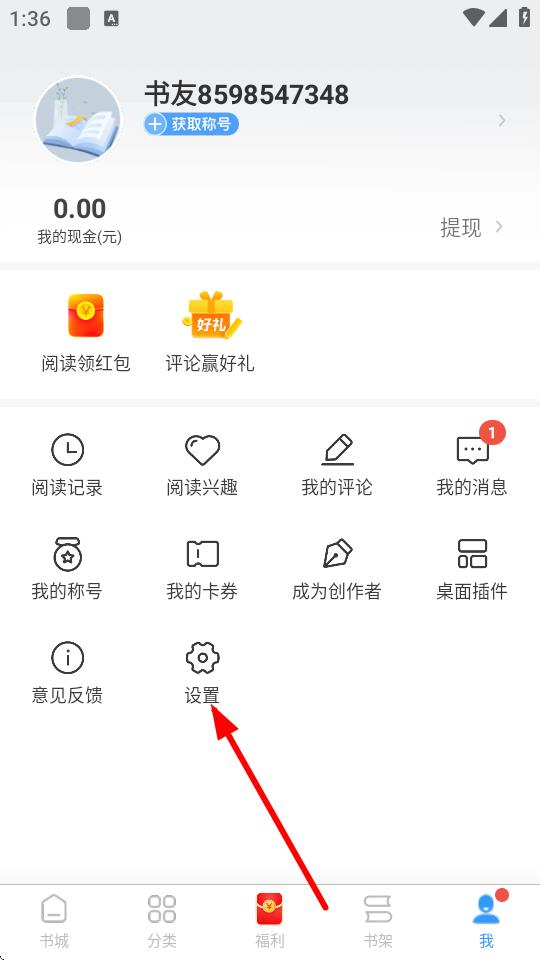 1、打開瘋讀小說APP,點(diǎn)擊底部導(dǎo)航欄中的我選項(xiàng),進(jìn)入個(gè)人中心界面。