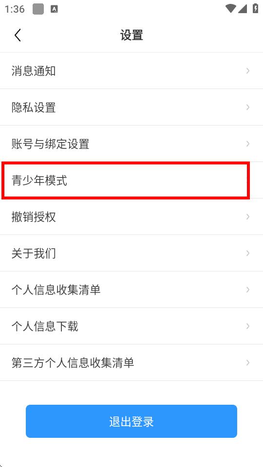 3、在設(shè)置頁面中,找到青少年模式選項(xiàng)并點(diǎn)擊進(jìn)入。