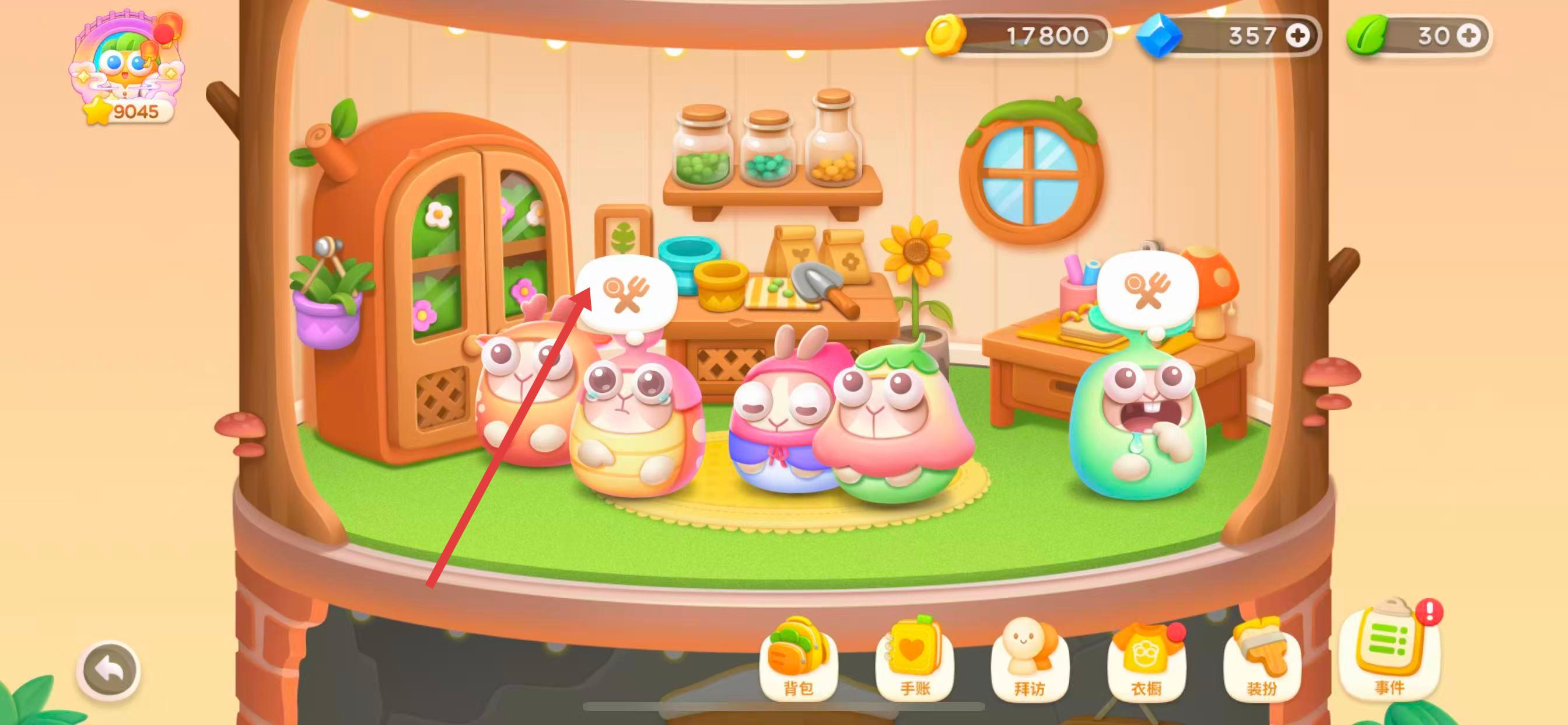 2、在兔子窩中,找到頭頂帶餐叉圖標(biāo)的兔子,點(diǎn)擊該兔子,進(jìn)入專屬互動(dòng)界面。