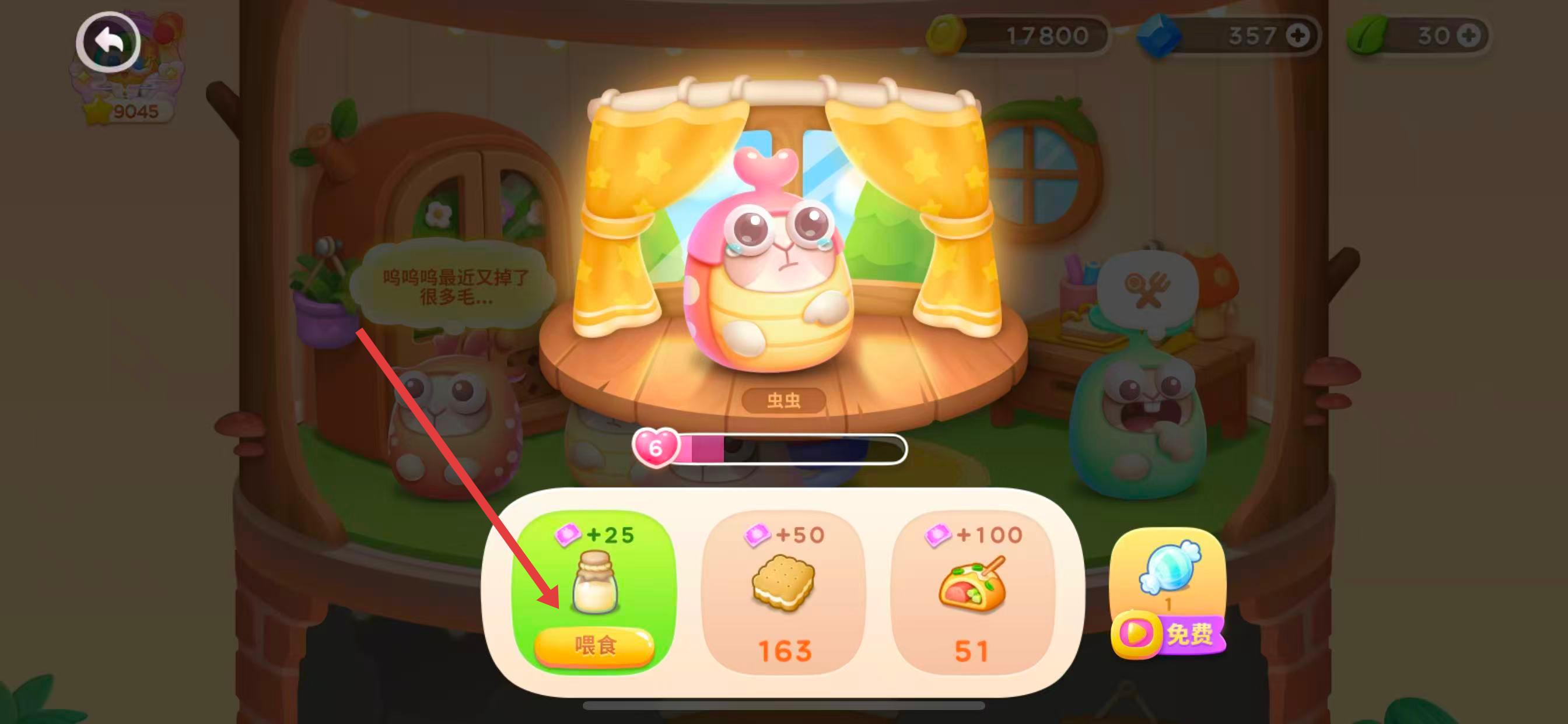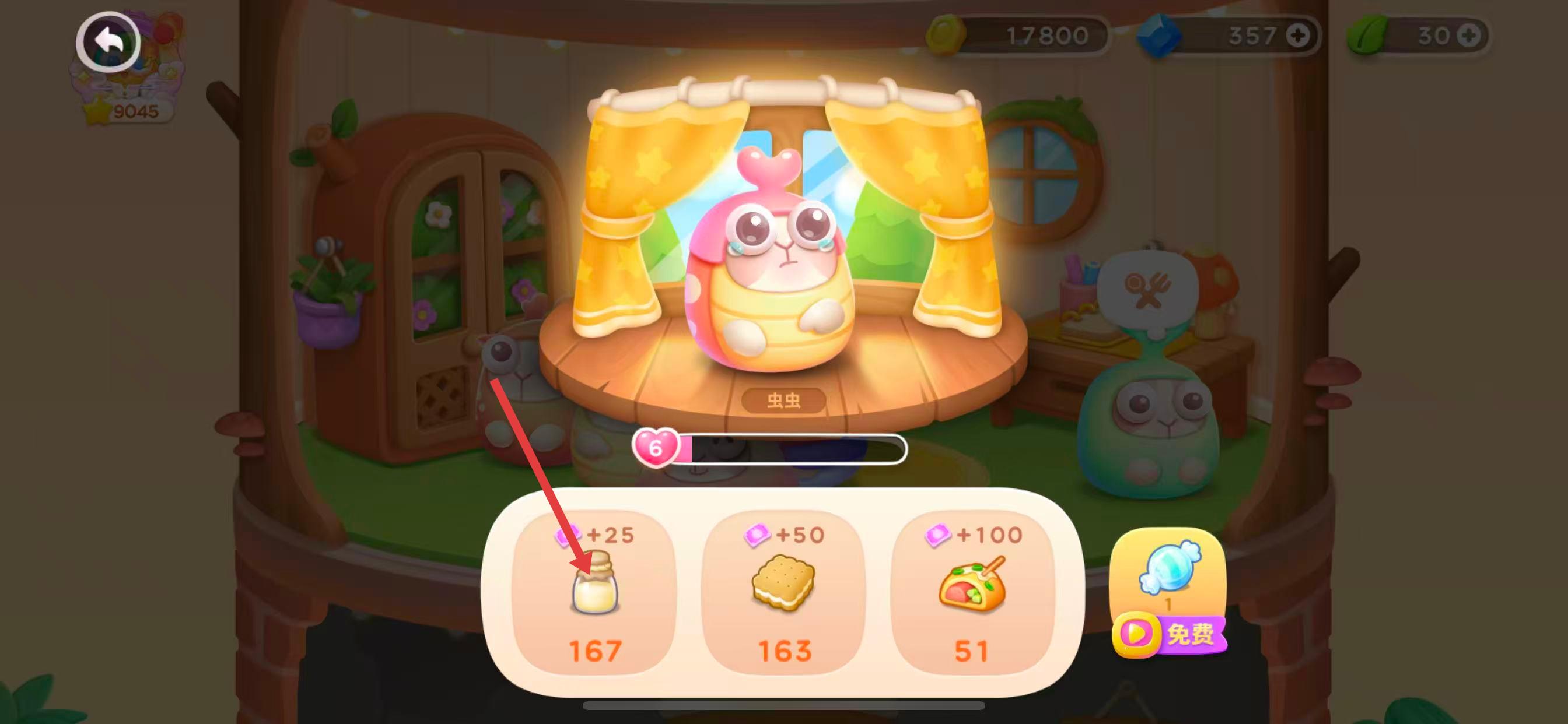 3、在互動(dòng)界面下方的食物欄,選擇想要投喂的食物,如牛奶。