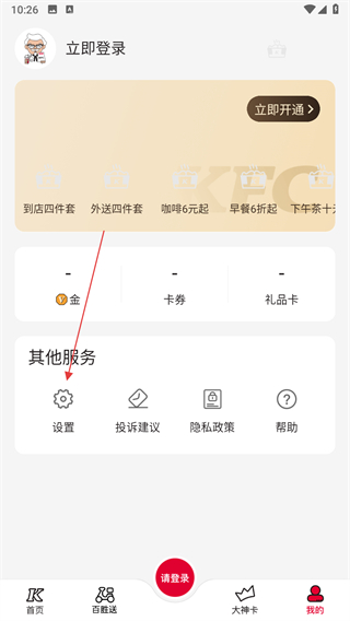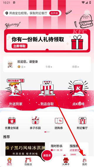1、打開肯德基APP后,在底部導(dǎo)航欄點(diǎn)擊我的進(jìn)入個(gè)人界面。