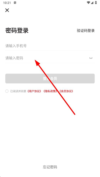 4、在密碼登錄頁面,依次輸入手機(jī)號(hào)和密碼,勾選同意相關(guān)協(xié)議后,點(diǎn)擊登錄按鈕即可完成密碼登錄。