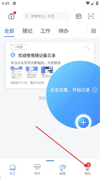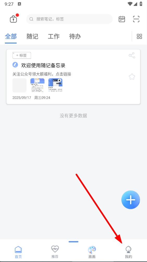 1、打開隨記備忘錄APP,點(diǎn)擊底部導(dǎo)航欄我的選項(xiàng)。