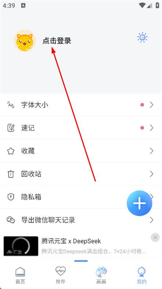 2、在我的頁(yè)面,找到并點(diǎn)擊上方的點(diǎn)擊登錄區(qū)域。