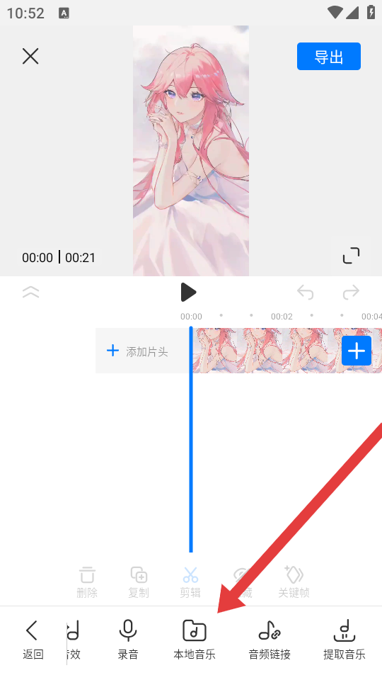 4、在音頻操作欄中,點擊本地音樂,即可導入本地音樂到視頻中。
