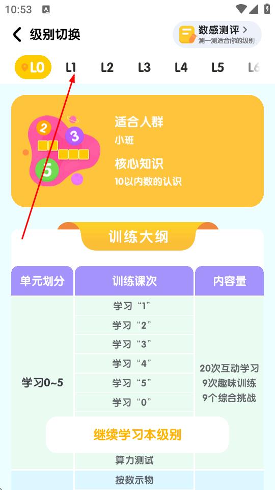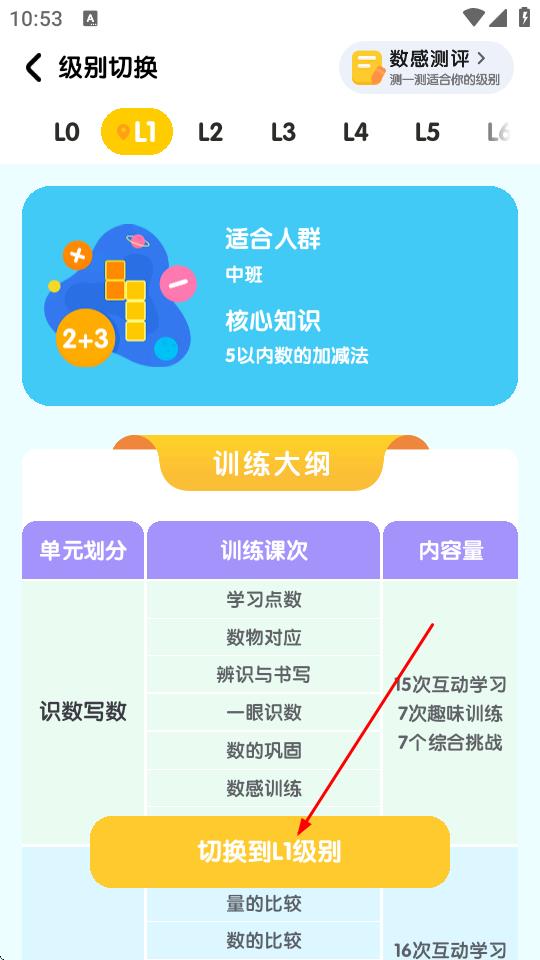 4、確認(rèn)所選年級后,點擊該年級下方對應(yīng)的切換到L1級別按鈕,即可完成年級切換。