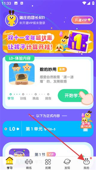 1、打開數(shù)感星球APP,進入時點擊右下方我的圖標(biāo)。
