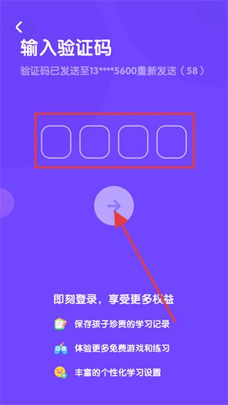 4、輸入收到的驗證碼,點擊箭頭即可完成賬號登錄。