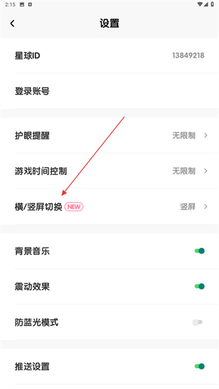 3、在設(shè)置的頁面內(nèi),找到并點擊橫/豎屏切換的按鈕。