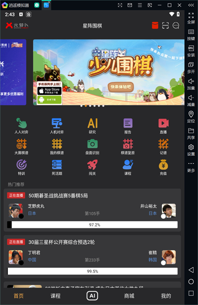 2、高水平:星陣曾獲得四次世界人工智能圍棋大賽冠軍,并仍在不斷進(jìn)步,星陣會(huì)不斷地將最新最高版本的AI提供給用戶,提供最先進(jìn)的圍棋理論。