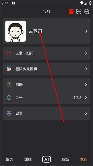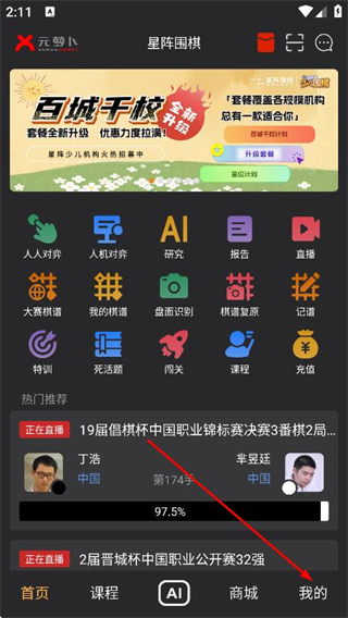1、打開星陣圍棋app,點(diǎn)擊底部導(dǎo)航欄的我的選項(xiàng)。