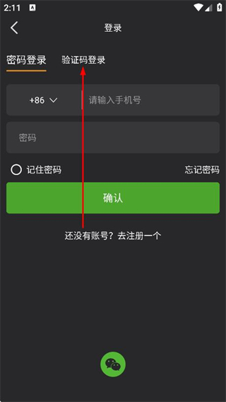3、進(jìn)入登錄頁面后,點(diǎn)擊上方的驗(yàn)證碼登錄選項(xiàng)。