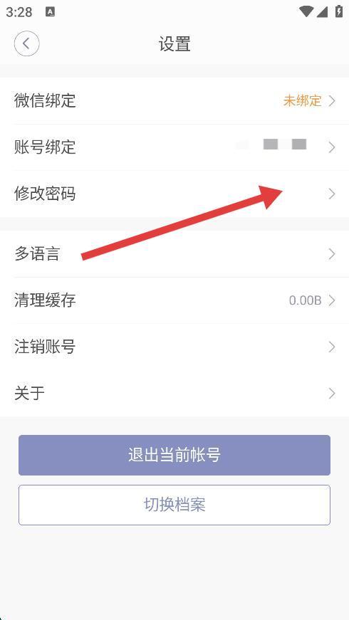 3、在設(shè)置頁面中,找到并點擊修改密碼選項。
