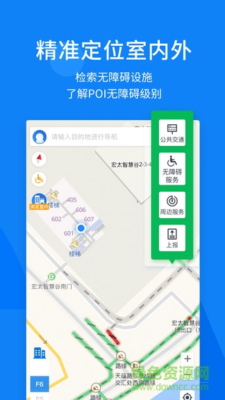 1、室內(nèi)外定位:顯示周邊盲道或無障礙通道情況