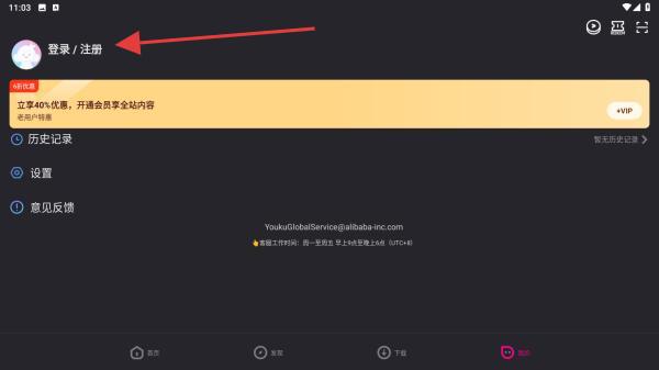 2、在個(gè)人頁(yè)面頂部,點(diǎn)擊登錄/注冊(cè)按鈕,跳轉(zhuǎn)至登錄界面。