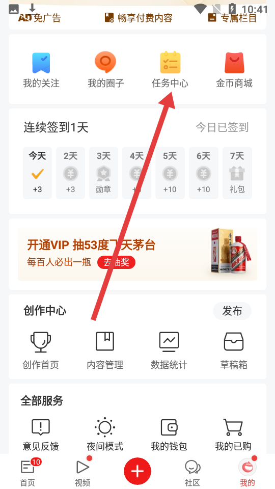 1、打開網(wǎng)易新聞點擊我的,再點擊任務(wù)中心進入任務(wù)界面。
