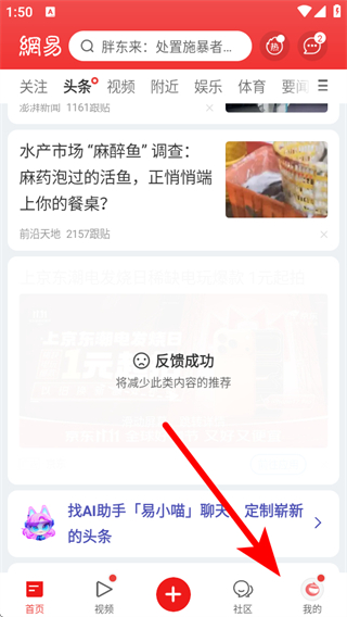 1、打開網(wǎng)易新聞APP,點擊右下角我的,進入個人的頁面。