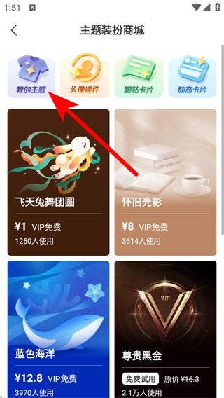 3、在主題裝扮商城頁面,點擊我的主題,進入我的主題頁面。