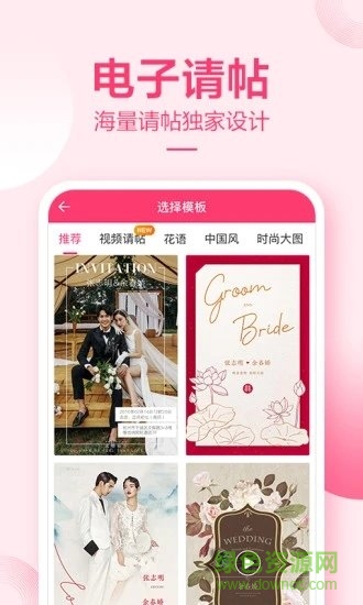 婚禮紀(jì)旗下專注電子請(qǐng)?zhí)囊苿?dòng)應(yīng)用:海量模版,精美動(dòng)效,專屬定制,3分鐘快速制作,可自定義視頻音樂圖片文字等,一鍵分享。覆蓋全球5億多結(jié)婚新人的電子請(qǐng)?zhí)?,匯聚了數(shù)十位專業(yè)設(shè)計(jì)師靈感,為各種尺寸、風(fēng)格婚紗照設(shè)計(jì)模板。