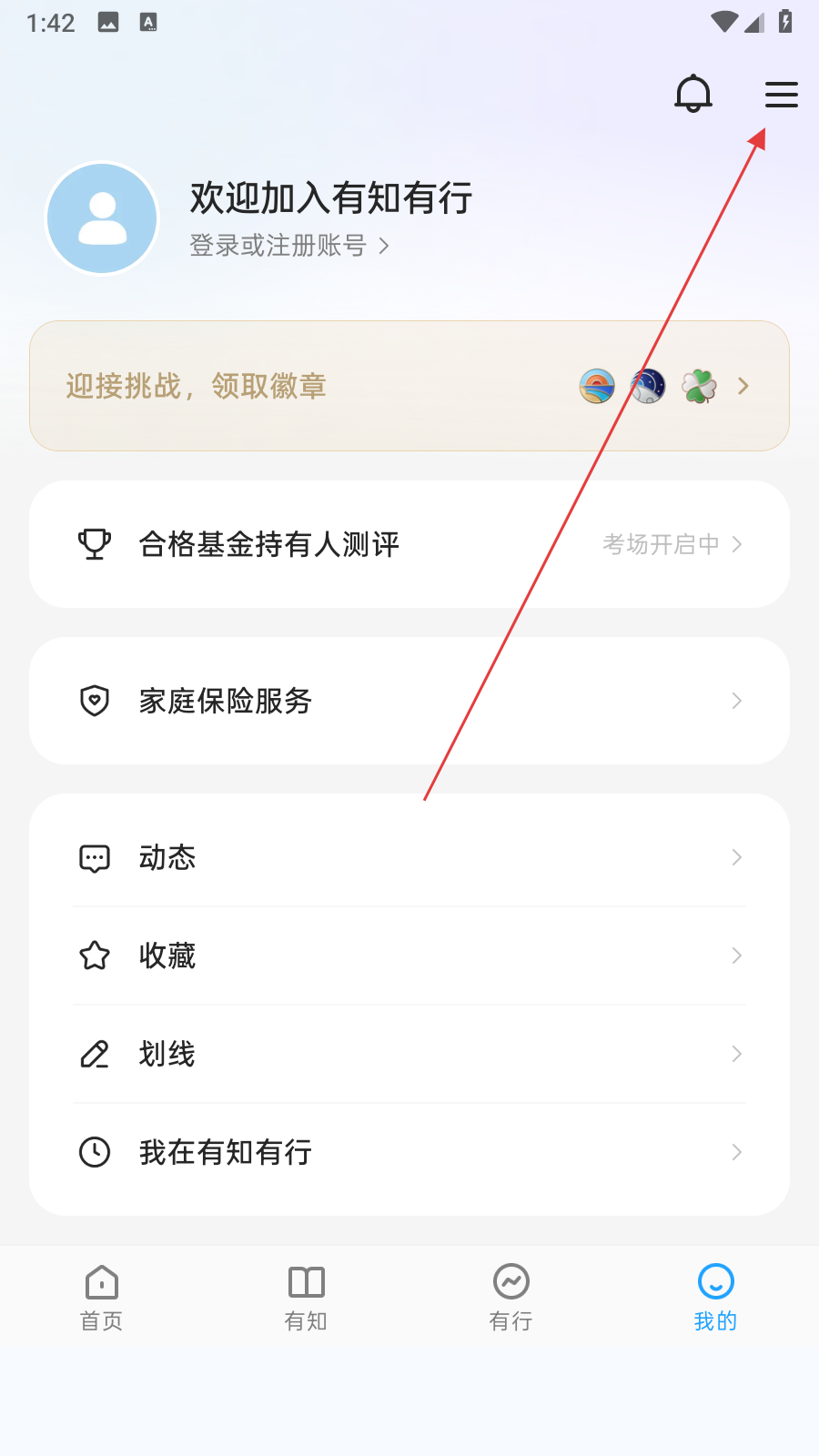 2、在個(gè)人頁(yè)面中,點(diǎn)擊右上方的菜單按鈕,進(jìn)入設(shè)置相關(guān)界面。