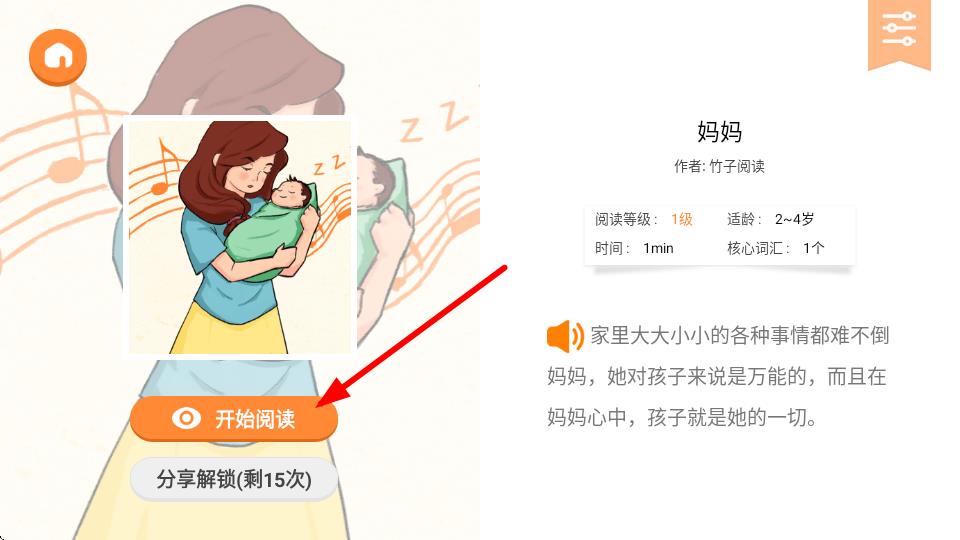 1、打開竹子閱讀app,在首頁選擇想要閱讀的書籍,比如點(diǎn)擊媽媽這本書籍封面。