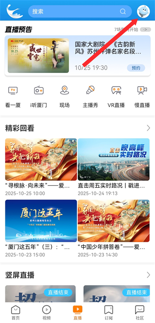 1、打開看廈門APP,點(diǎn)擊右上角個(gè)人圖標(biāo),進(jìn)入個(gè)人頁(yè)面。