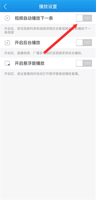 4、在播放設(shè)置頁(yè)面,將視頻自動(dòng)播放下一條的開關(guān)開啟,完成設(shè)置。