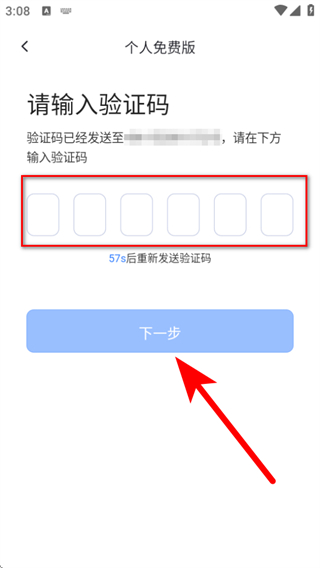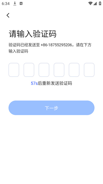 4、在請輸入驗證碼頁面,輸入收到的驗證碼,點擊下一步即可完成登錄。