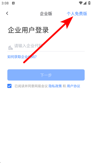 2、在登錄界面,點擊個人免費版,切換到個人版登錄的頁面。