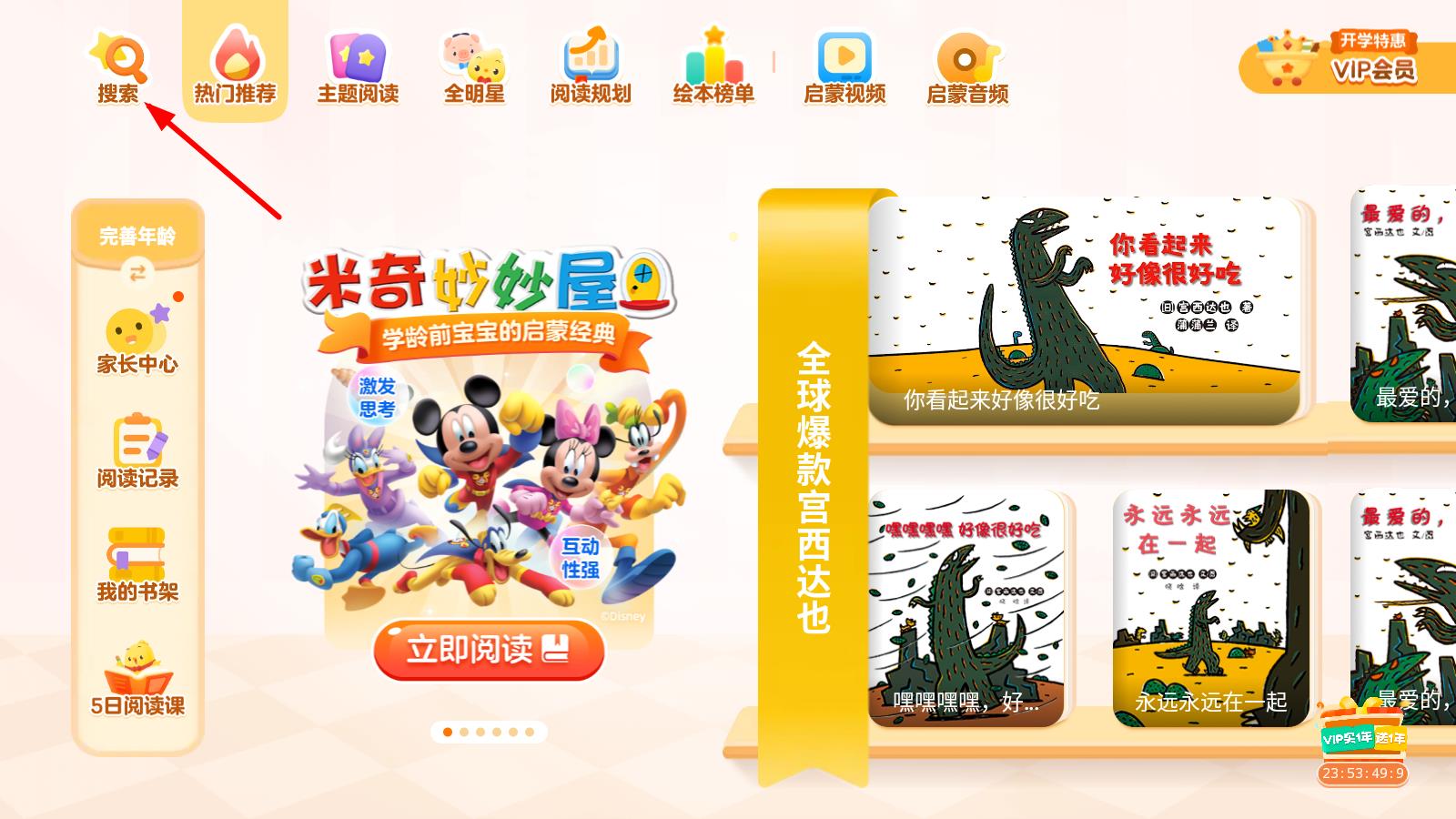 1、打開叫叫繪本應(yīng)用,點擊頁面左上角的搜索圖標(biāo)。