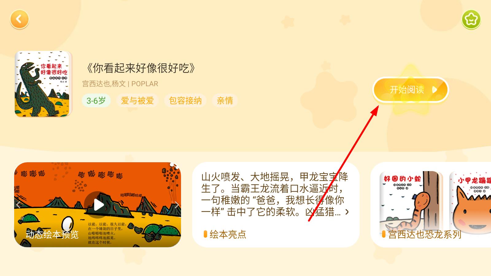4、進入書籍詳情頁面后,點擊開始閱讀按鈕,即可開始閱讀該繪本。
