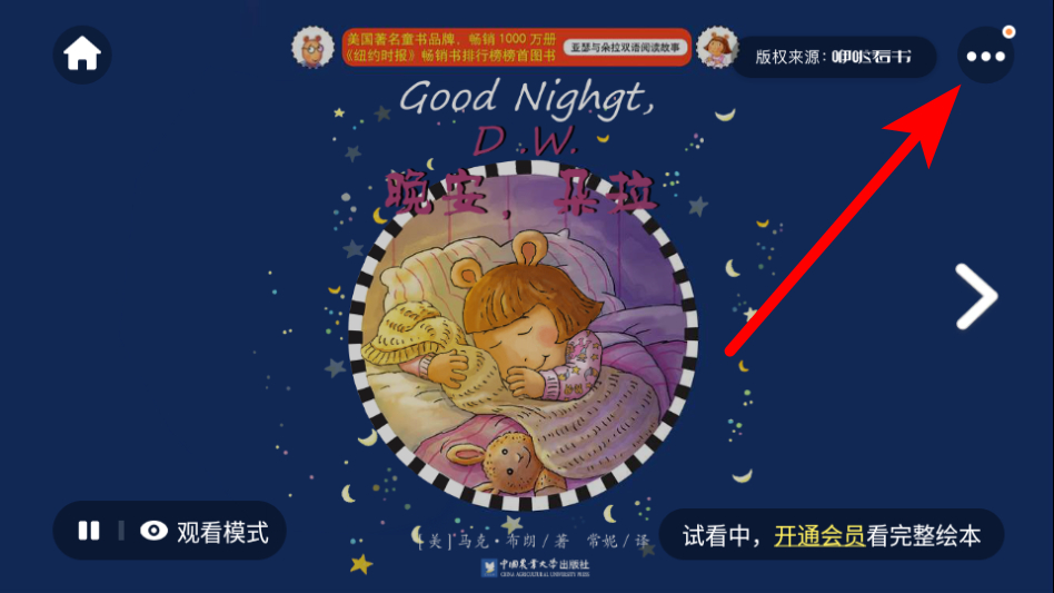 3、在繪本閱讀頁面,點擊右上角的三個點圖標(biāo),展開功能菜單。