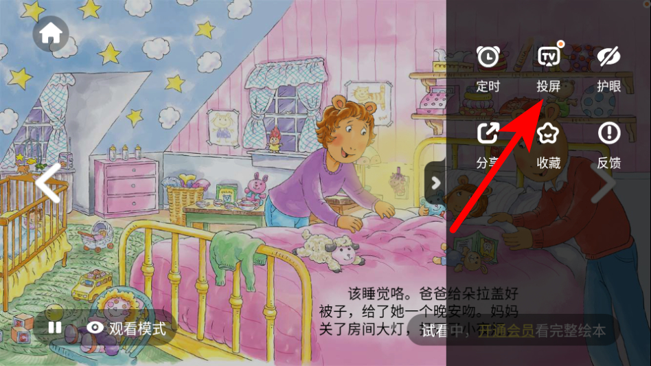 4、在功能菜單中,點擊投屏選項,按照提示操作即可將繪本投屏到電視上。