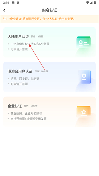 2、在實(shí)名認(rèn)證頁(yè)面,選擇大陸用戶認(rèn)證選項(xiàng)。