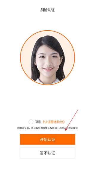 4、在刷臉認(rèn)證頁(yè)面,點(diǎn)擊開始認(rèn)證,完成人臉識(shí)別即可。