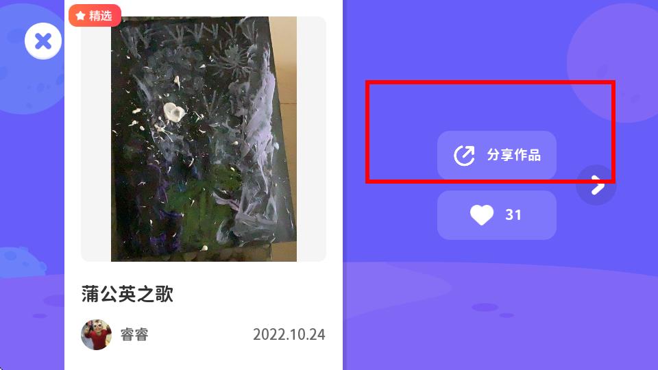 3、在作品詳情頁面,找到分享作品按鈕并點(diǎn)擊。