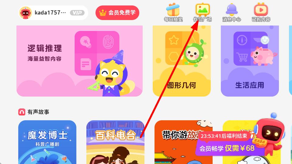 1、首先打開相關(guān)應(yīng)用,點(diǎn)擊頁面上方的作品廣場按鈕。