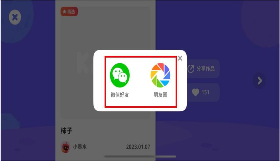 4、點(diǎn)擊后會(huì)彈出分享選項(xiàng),可選擇分享給微信好友或者分享到朋友圈。