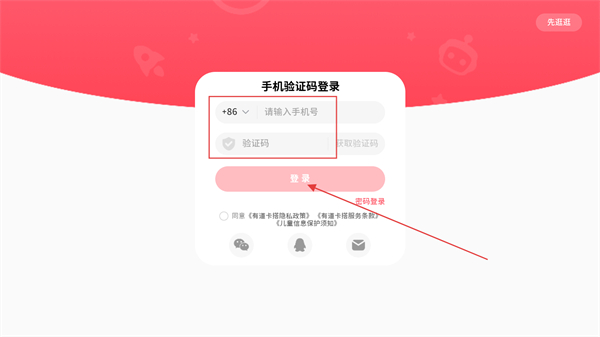 3、輸入手機(jī)號、驗(yàn)證碼后,點(diǎn)擊登錄的按鈕即可。