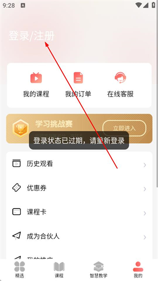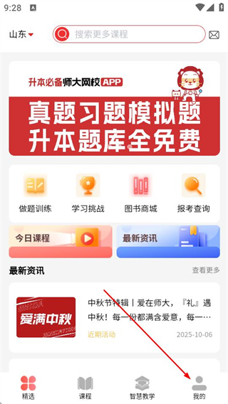 1、打開師大網(wǎng)校APP,點擊底部導航欄中的我的選項。