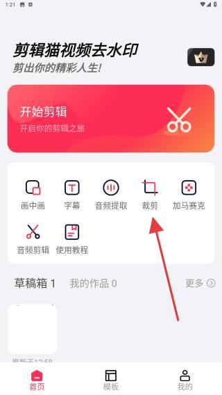 1、打開剪輯貓APP,若首頁(yè)有裁剪功能,直接點(diǎn)擊進(jìn)入。