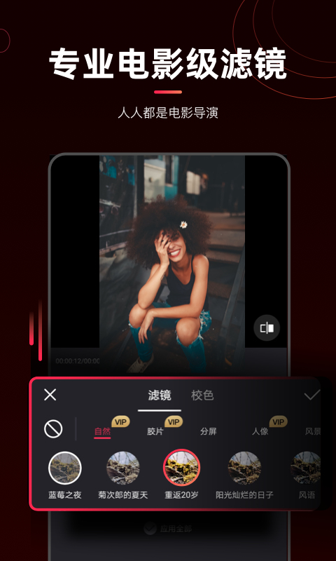 多樣濾鏡:自然,膠片,人像多種濾鏡,每個(gè)視頻都能美美噠~