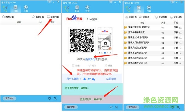 運行軟件后,首先需要登錄百度賬號。在網(wǎng)盤頁面點擊網(wǎng)盤登錄按鈕。登錄是基于百度官方入口,受官方Https協(xié)議保護(hù),安全可靠。