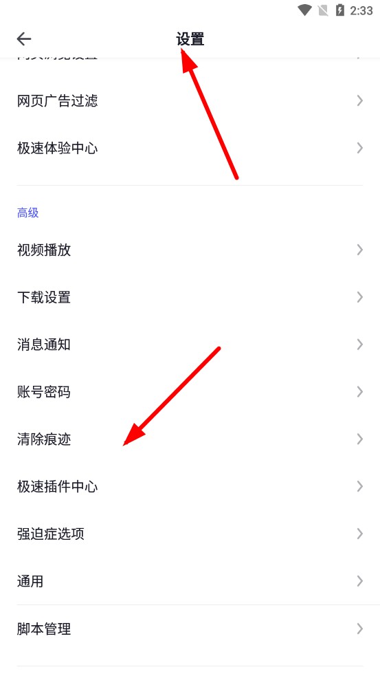 1、進入360極速瀏覽器設置頁面,點擊清除痕跡選項。