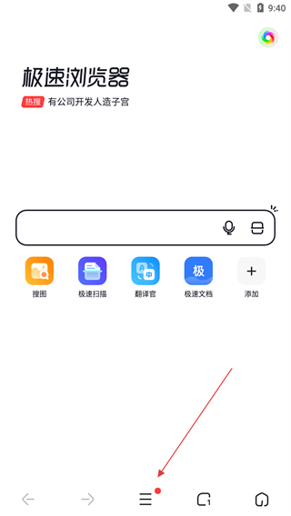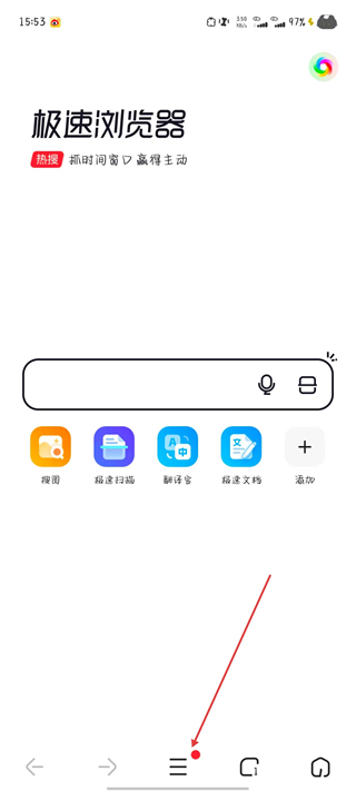 1、打開360極速瀏覽器,點擊底部的三條橫線菜單按鈕。