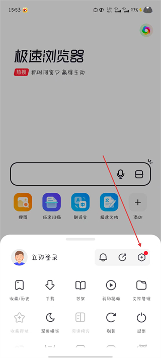 2、在彈出的菜單中,點擊右上角的設置圖標。